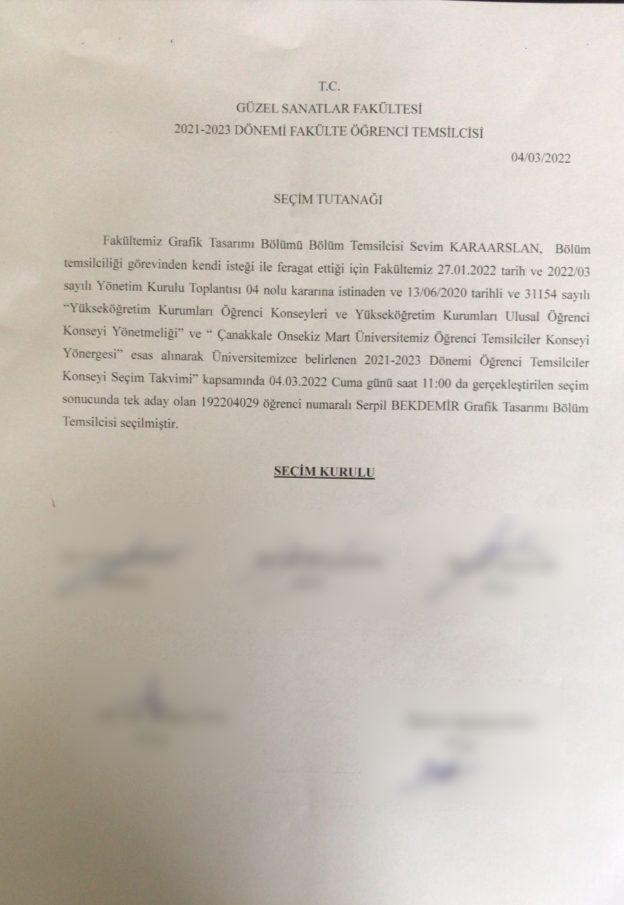 Grafik Tasarımı Bölümü Öğrenci Temsilcisi Seçimi Sonucu
