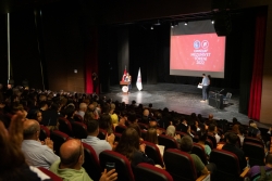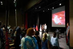 Saygı duruşu ve İstiklal Marşı ile başlayan tören, Fakültemiz Tiyatro Bölümü Öğretim Görevlisi Sayın Yonca YÜKSEL’in müzik dinletisinin ardından Güzel Sanatlar Fakültesi Dekanı Sayın Prof. Dr. Evren KARAYEL GÖKKAYA’nın ve ardından Onsekiz Mart Üniversitesi Rektör Yardımcısı Sayın Prof. Dr. Pelin KANTEN’in konuşmaları ile devam etti.