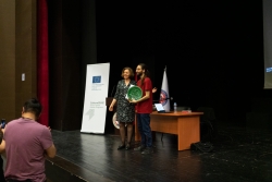Etkinlik sonunda Dekan Yardımcımız Doç. Yeşim ZÜMRÜT tarafından teşekkür belgesi ve ÇASEM'de üretilen Troya Tabak takdim edildi.