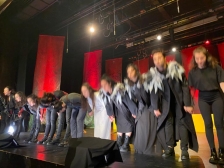 Tiyatro bölümümüzün dış paydaşımız TRT işbirliğinde çalıştığı Faust isimli oyunumuzun prömiyeri, 20 Haziran 2023 tarihinde Çanakkale Onsekiz Mart Üniversitesi Güzel Sanatlar Fakültesi Necip Fazıl Kısakürek Tiyatro Salonu’nda yapıldı. Oyun öncesinde, fuaye alanında Prof. Dr. Hakan Daloğlu’nun Faust sergisini gezen izleyicilerimiz, Doç. Dr. Esra Çizmeci’nin yönettiği oyuna yoğun bir katılım gösterdiler. Gösterim, yapımcı ve yönetmen Serpil Tsioros’un idaresindeki TRT ekibi tarafından kayda alındı. 2024 yılında TRT’de yayına girecek olan bir sanat programı kapsamında oyunun yapım aşamasını anlatan kısa bir belgesel eşliğinde yayınlanacak olan oyunumuz, önümüzdeki sene de gösterimde olmaya devam edecek.