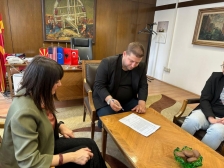 Çanakkale Onsekiz Mart Üniversitesi Güzel Sanatlar Fakültesi Dekanı Prof. Evren Karayel Gökkaya, Dekan Yardımcıları Prof. Yeşim Zümrüt ve Doç. Dr. Kenan Saatçıoğlu, Tiyatro Bölümü Başkanı Dr. Öğr. Üyesi Özge Zeren, Geleneksel Türk Sanatları Bölümü öğretim üyesi Dr. Öğr. Üyesi Berna İleri ve Grafik Tasarımı Bölümü öğretim elemanı Öğr. Gör. Dr. Devrim Dinç'ten oluşan heyet Kuzey Makedonya Kültür Bakanlığı’nın davetlisi olarak 2-4 Haziran 2023 tarihleri arasında Kuzey Makedonya’nın başkenti Üsküp’teydi. Çanakkale Onsekiz Mart Üniversitesi Güzel Sanatlar Fakültesi Tiyatro Bölümü ile Tekstil ve Moda Tasarımı Bölümlerinin temmuz ayı içerisinde Üsküp’te gerçekleştireceği tiyatro oyunları ve sergi etkinliği için görüşmeler gerçekleştiren heyet, etkinliklerin planlandığı mekanlarda bu etkinliklerin organizasyonu adına paydaşlarla bilgi alışverişlerinde bulundular. Üsküp Arnavut Tiyatrosu yetkilileri ile görüşmeler gerçekleştiren Güzel Sanatlar Fakültesi heyeti, Üsküp Türk Tiyatrosu’nun daveti ile “Tik-Tak” adlı tiyatro oyununu izleme fırsatı yakaladı. Bununla birlikte, Çanakkale Onsekiz Mart Üniversitesi Güzel Sanatlar Fakültesi Dekanı Prof. Evren Karayel Gökkaya ve Kuzey Makedonya Kültür Bakanı Yardımcısı Daim Luci’nin hazır bulunduğu tören ile Çanakkale Onsekiz Mart Üniversitesi Rektörlüğü ve Kuzey Makedonya Kültür Bakanlığı arasında bir protokol imzalandı.