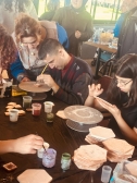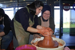 Gelibolu Özel Bakım Merkezi'nin değerli katkıları ve Çanakkale Engelliler Derneği iş birliğiyle gerçekleştirilen 3 Aralık Dünya Engelliler Günü ve 10 Aralık Dünya İnsan Hakları Günü kapsamında düzenlenen dayanışma ve farkındalık etkinliğine Güzel Sanatlar Fakültesi de sanatsal atölyeleri ile yer aldı. Etkinlik, 17 Aralık Salı günü saat 09:30'da keyifli bir kahvaltı ile başladı. Kahvaltının ardından, Geleneksel Türk Sanatları Bölümü'nden Doç. Dr. İrem Pala, Resim Bölümü'nden Dr. Öğr. Üyesi Gül Sarıdikmen ve Öğr. Gör. Vahid Novruzov, Arş. Gör. Gökhan Keleş, Tekstil ve Moda Tasarımı Bölümü'nden Öğr. Gör. Şule Günal ve Arş. Gör. Şule Öztürk'ün koordinatörlüğünde, çini boyama, seramik şekillendirme, kumaş baskı ve resim atölyeleri kurarak sanatsal faaliyetler yürütüldü. Öğrencilerimiz de bu süreçte aktif rol alarak, sanatın paylaşıldıkça çoğalan değerini deneyimlediler. Katılımcılar, bu atölyelerde hem yeteneklerini keşfettiler hem de sanat aracılığıyla kendilerini ifade etme imkânı buldular.