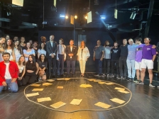 Tiyatro Bölüm Başkanı Dr. Öğr. Üyesi Vecihe Özge Zeren’in yönettiği, Arş. Gör. Zafer Öncül ve Oyunculuk Ana Sanat Dalı üçüncü sınıf öğrencisi Nuri Cabaroğlu’nun oynadığı “Kafka: Baba ve Oğul” isimli oyun, 6 Temmuz 2023 tarihinde Üsküp Arnavut Tiyatrosu’nda sahnelendi. Kuzey Makedonya Kültür Bakanlığı ile ÇOMÜ Güzel Sanatlar Fakültesi arasında protokolü yapılan “ZAMAN, MEKÂN, YOL” isimli ortak sanat etkinlikleri kapsamında sahnelenen oyunda, üçüncü sınıf öğrencilerimizden Melih Karlık, sahne amiri ve ses kumanda; Duygu Kula, ışık kumanda ve Sıla Estel Giritlioğlu da sahne amiri olarak görev aldı. İlk gösterimi Kasım 2022’de ÇOMÜ GSF NFK Tiyatro Salonu’nda yapılan oyunun ikinci gösterimi, Üsküp Arnavut Tiyatrosu’nun küçük salonunda izleyiciyle buluştu. Kuzey Makedonya Kültür Bakan Yardımcısı Daim Luchi, ÇOMÜ Güzel Sanatlar Fakültesi Dekanı Prof.Dr. Yeşim Zümrüt ve Dekan Yardımcısı Doç.Dr. Kenan Saatçıoğlu’nun da izleyiciler arasında yer aldığı oyun büyük beğeni topladı.