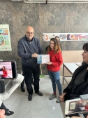 Projenin Koordinatörü Prof. Dr. Yeşim Zümrüt’e, Akademik yürütücüsü Dr. Öğr. Üyesi Müjde Yücel Coşar, Öğr. Gör. Dr. Mehmet Coşar, Dr. Öğr. Üyesi Oğuz Tunç, Öğr. Gör. Dr. Devrim Dinç, Arş. Gör. Kaan Kaya’ya ve Seramik programı yüksek lisans öğrencisi projenin zeytin temalı tasarımının sahibi Sedef Aslan‘a da belge takdimlerinin yapıldığı program kapsamında, Çanakkale Belediyesi Yeşil Yerel Yönetim ve Kültür Merkezi Binası Meydanında uygulanacak olan tasarımın ilk etap çalışmaları yerinde görülmüş oldu. Atölye Kale ve Ürge departmanlarının değerli katkıları ve sağladıkları sıcak çalışma ortamı ile üretilen mozaik çalışmalar, üç üniversitenin öğrencilerinin yüksek motivasyonu ve uyumu takdir ile karşılandı.