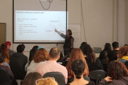 “Seramik Sektöründe Tasarım/Ürün Geliştirme Departmanlarının İşleyişi ve Sektörün İnsan Kaynağı Beklentileri” konulu söyleşimize bölüm içi olduğu kadar bölüm dışından da çok sayıda öğrenci ve öğretim elemanı katılım sağlamıştır. Seramik sektöründeki yerlerini belirleme hedef koyabilme ve bu hedefi yönetebilme adına öğrencilerimize ve onları en doğru şekilde yönlendirebilmek adına öğretim elemanlarımıza değerli katkılar sağlayan sunumun ardından, ÇASEM bünyesinde üretilen fırça dekorlu yelkenli motifli Geleneksel Çanakkale tabağı yorumu günün anısına konuğumuza sunulmuştur.